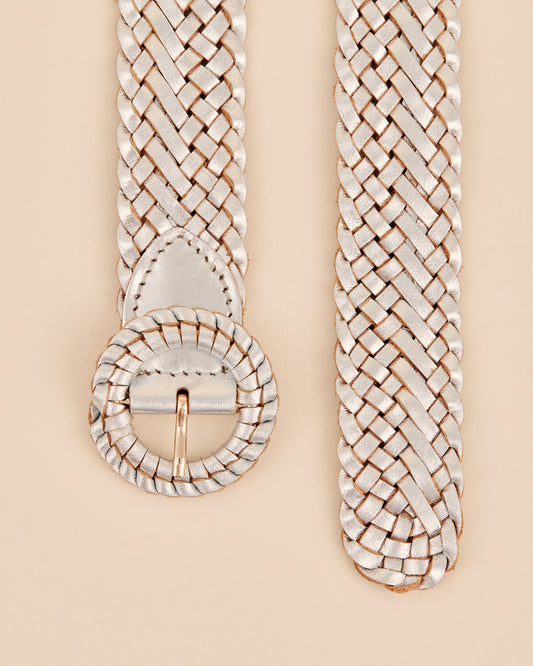 WEAVIE NICKS SILVER Wide Woven Leather Belt