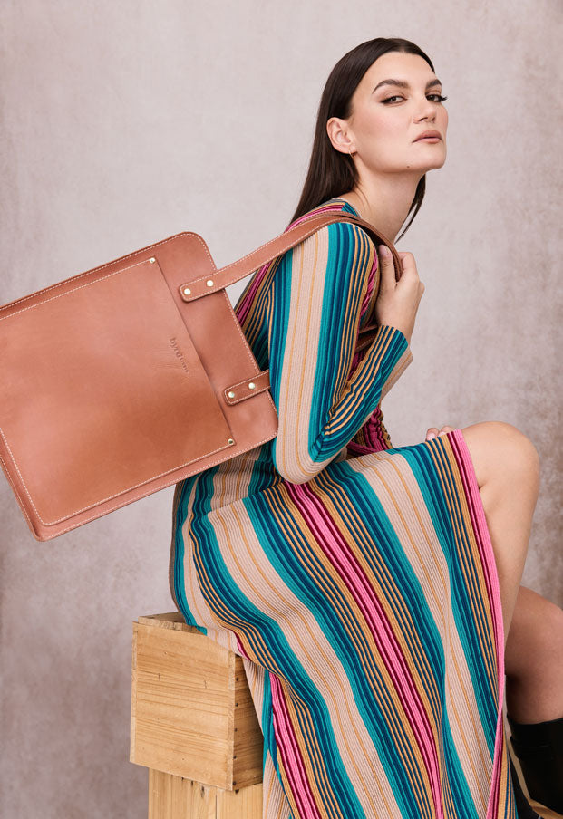 Get it done right with the Let Me Work It Tote. This large tote epitomises the classic and functional styling of Byrd Studio where the elegant design, quality veg-tan leather and all-brass buckles, clasps and rivets are the hero.